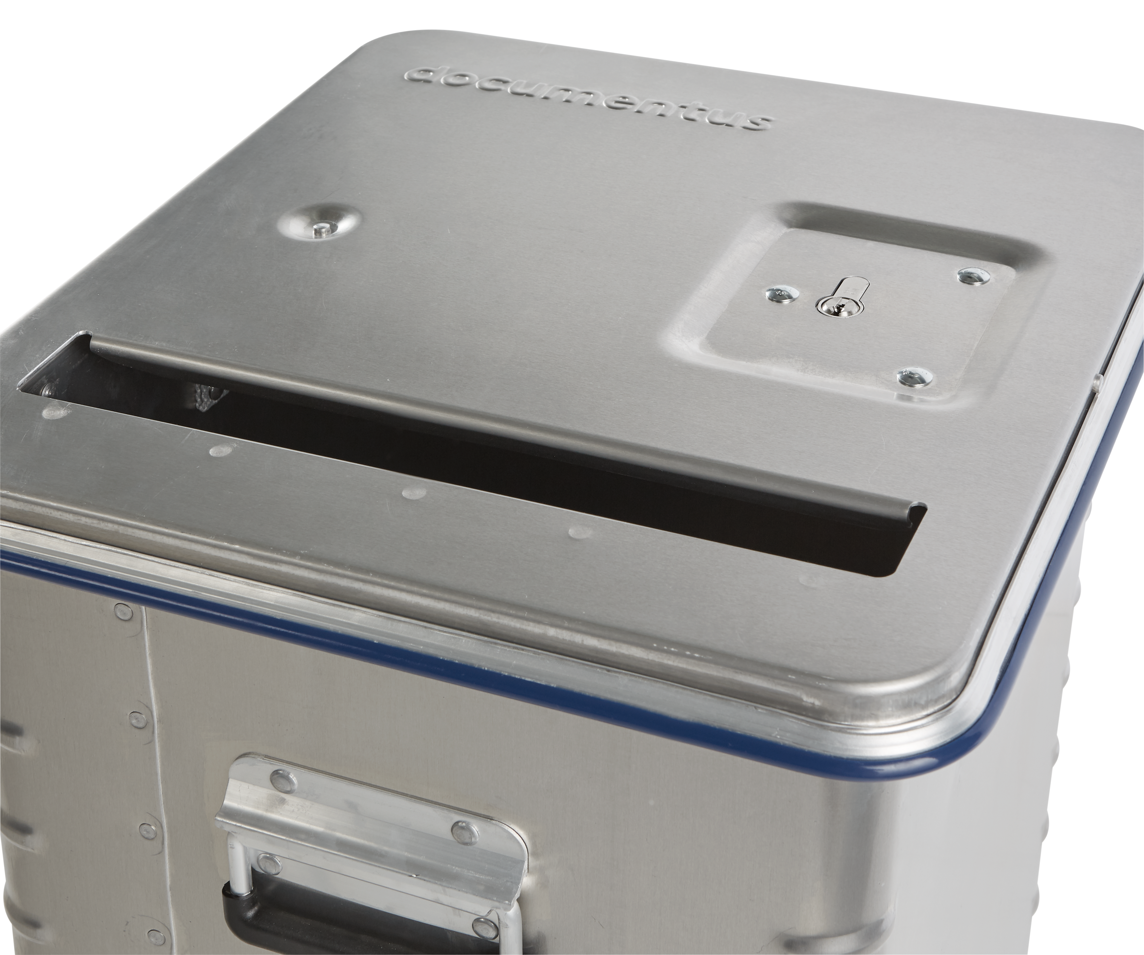 Eigenschaften: flexibel einsetzbar, mit Einwurfschlitz und Sicherheitsschloss. Ausreichend für ca. 10 Ordner.